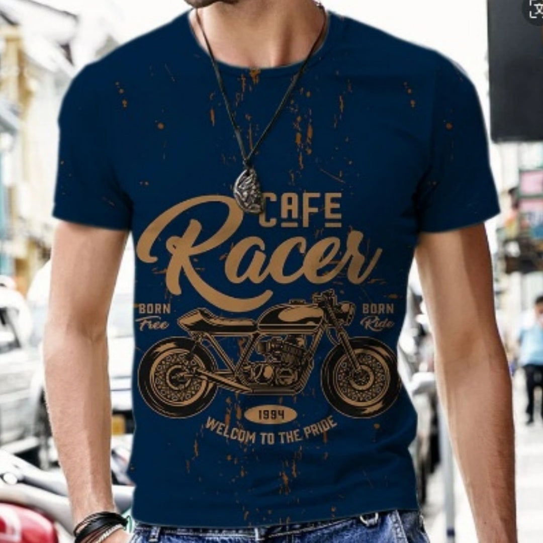 Men's Personalized Trendy 3D Street Motorcycle Digital Printed Short-sleeved T-shirt